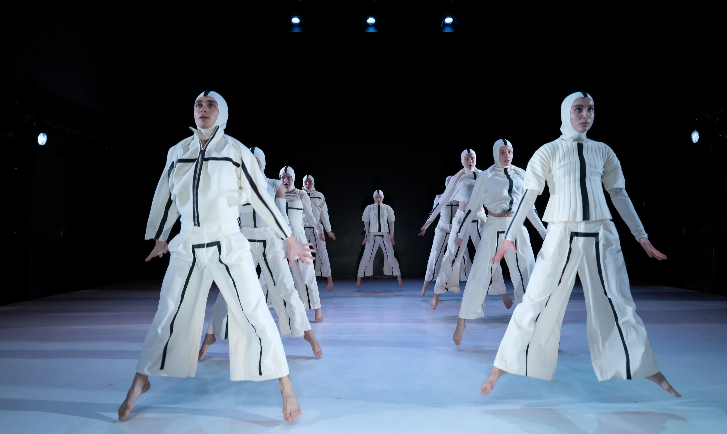 The choreography explores a world driven by optimisation, abundance, and the pursuit of collective perfection. Set within a living board game, the work introduces ten avatars - ten bodies - nodes within a system governed by Beth, a central consciousness regulating instinct and behaviour for the good of the whole.